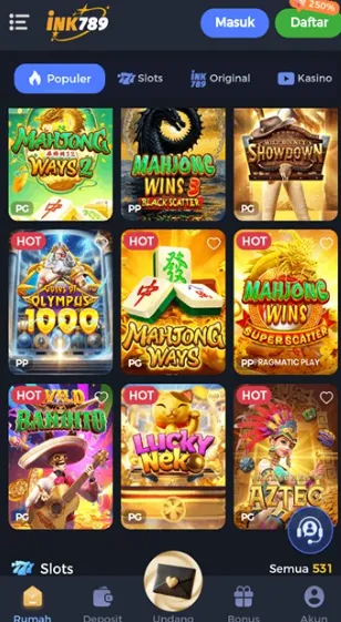 INK789 APK adalah aplikasi game slot virtual yang ringan, mudah, dan penuh warna. Dengan tema beragam, bonus harian, serta performa lancar, aplikasi ini cocok dijadikan hiburan santai kapan saja tanpa risiko uang asli.